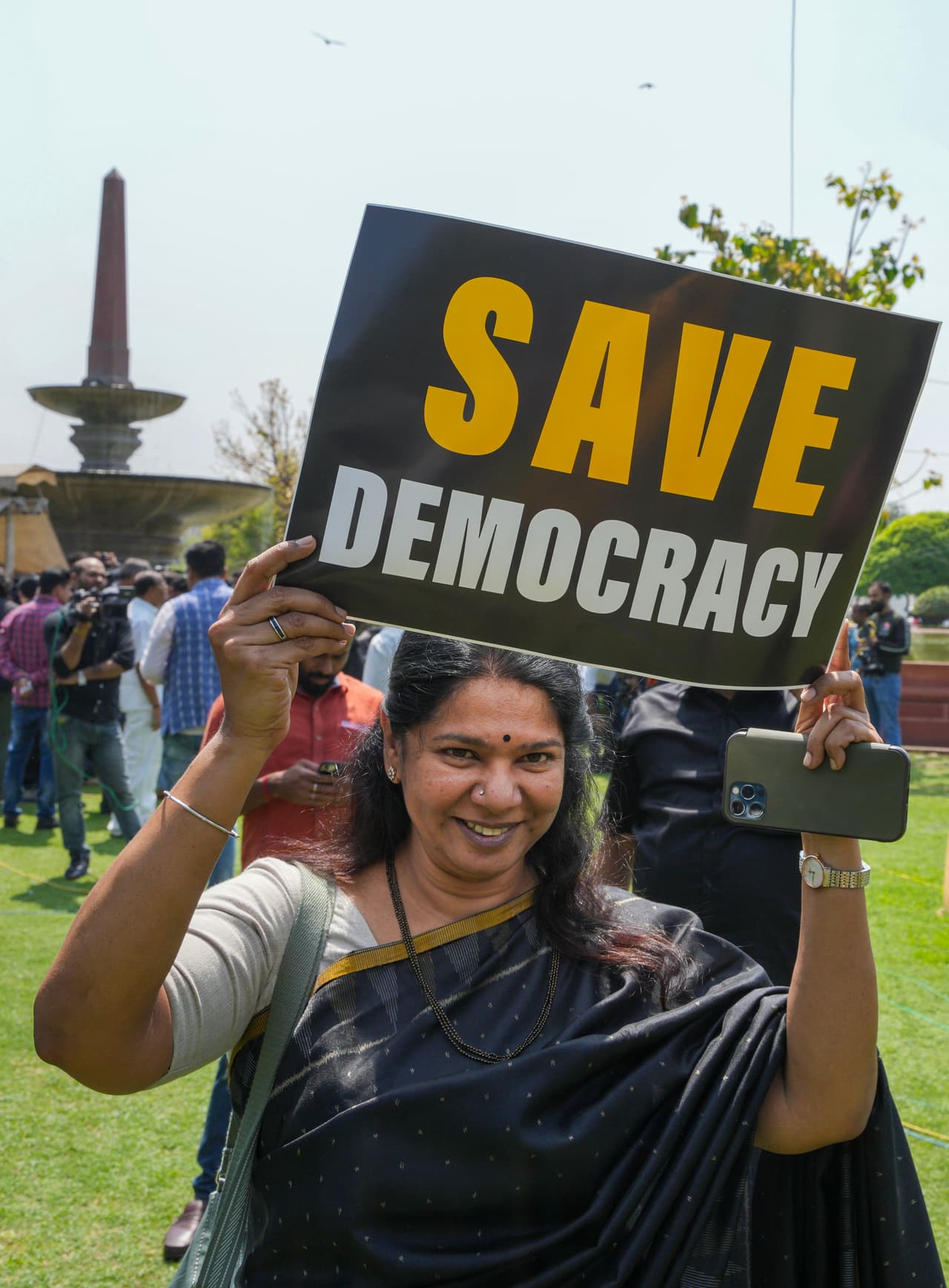 कांग्रेस के प्रोटेस्ट मार्च और मीटिंग में विपक्षी दलों ने एकजुटता दिखाई। 17 विपक्षी दल इस विरोध में शामिल हुए। मीटिंग में शामिल होने वालों में कांग्रेस, डीएमके, समाजवादी पार्टी, जेडीयू, बीआरएस, सीपीएम, आरजेडी, एनसीपी, सीपीआई, आईयूएमएल, एमडीएमके, केसी, टीएमसी, आरएसपी, आप, जम्मू-कश्मीर एनसी और शिवसेना (यूबीटी) प्रमुख रहे।