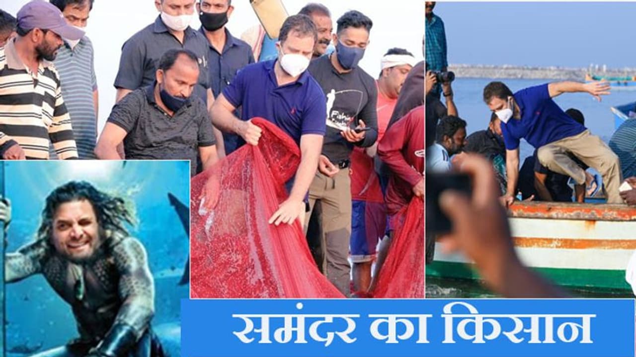 राहुल गांधी इस समय केरल के दौरे पर हैं। इस बीच वे मछुआरों के बीच पहुंचे और समुद्र में मछली पकड़ते देखे गए। वे नाव से कूदते भी कैमरे में कैप्चर किए गए। उनके ये फोटो सोशल मीडिया पर वायरल हुए हैं। इसे लेकर मीम्स भी बने हैं। देखिए सोशल मीडिया पर क्या चल रहा है।