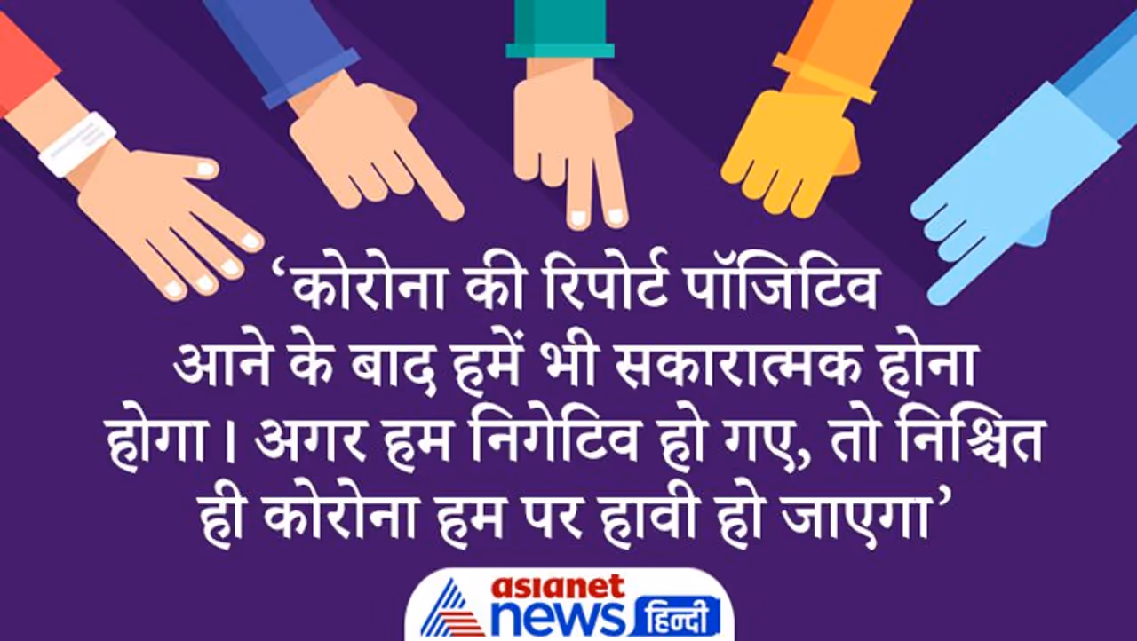 कोरोना एक अदृश्य दुश्मन है। इसका सामना भारत ही नहीं, अमेरिका, ब्रिटेन, फ्रांस ब्राजील जैसी महाशक्तियां भी कर रही हैं। लेकिन ऐसा भी नहीं है कि इसे हराया नहीं जा सकता हो। 14 दिन के होम आइसोलेशन में यह बात समझ आ गई कि अगर हम सही समय पर इलाज लेंगे। यह पहले दिन ही विश्वास करेंगे कि हमारी खांसी, जुकाम और बुखार भी कोरोना हो सकता है, तो आप आसानी से कोरोना पर जीत हासिल कर सकते हैं। लेकिन हमें यह याद रखना है कि अगर हमारी रिपोर्ट पॉजिटिव आने के बाद हम निगेटिव हो गए, तो निश्चित ही कोरोना हम पर हावी हो जाएगा। इसलिए कोरोना की रिपोर्ट पॉजिटिव आने के बाद हमें भी सकारात्मक रहना है। अगर हम ऐसा करने में सफल हो गए, तो दवाएं और दुआएं दोनों आपके इलाज में असर करने लगेंगी।