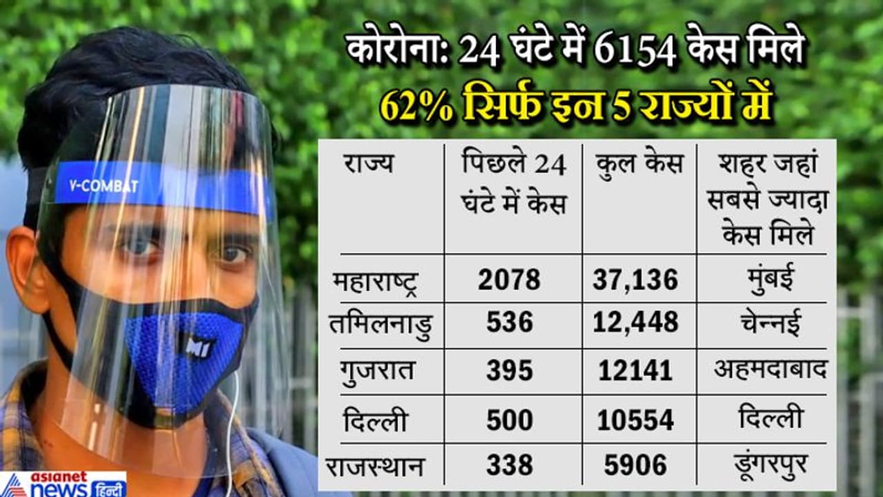भारत में कोरोना संक्रमण के मामले लगातार बढ़ रहे हैं। अब तक 1.06 लाख केस सामने आ चुके हैं। पिछले 24 घंटे में 6154 केस सामने आए हैं। इनमें से 62% सिर्फ 5 राज्यों में सामने आए हैं। ये राज्य महाराष्ट्र, तमिलनाडु, दिल्ली, गुजरात और राजस्थान हैं।