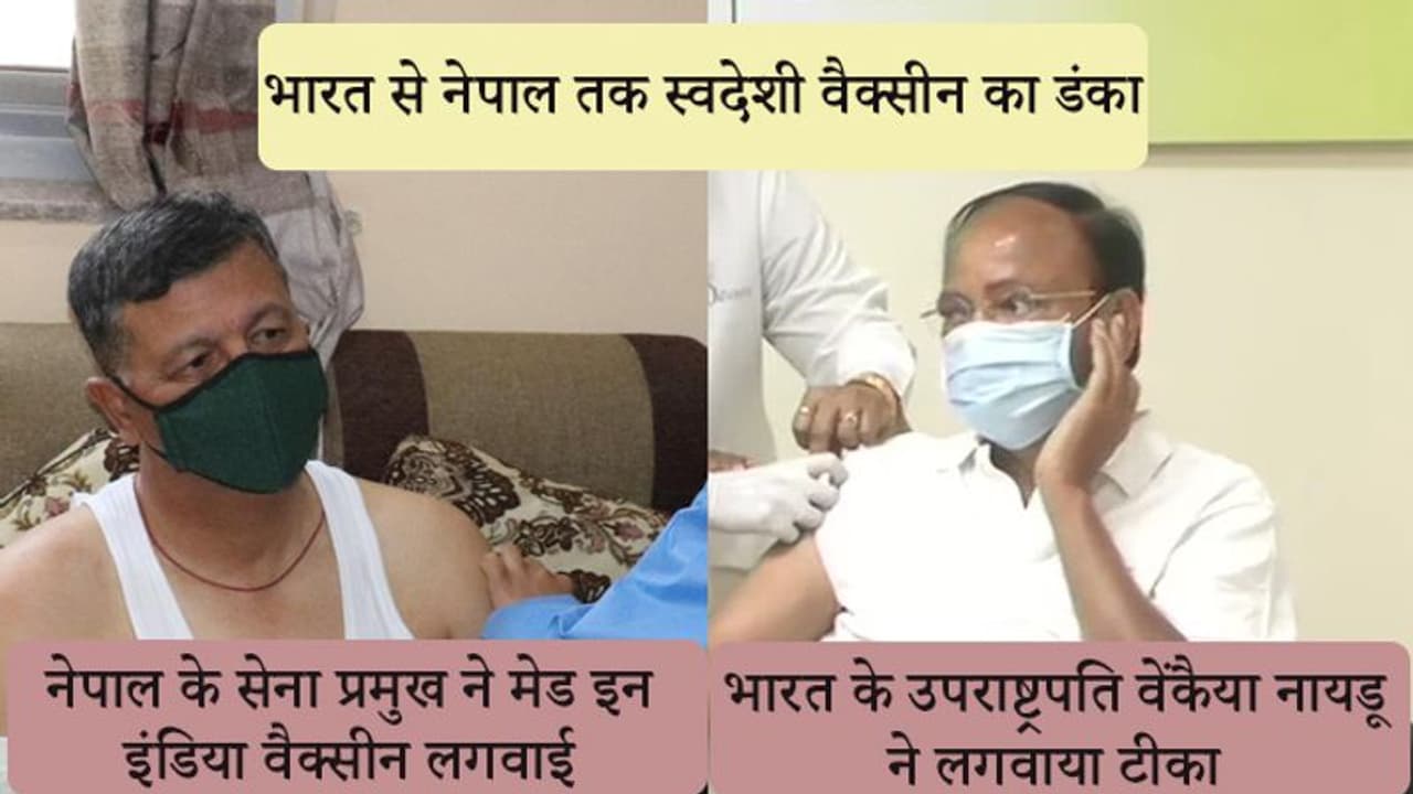 भारत ने नेपाल समेत अपने तमाम पड़ोसी देशों को भी कोरोना वैक्सीन भेजी है। नेपाल में भी हाल ही में कोरोना वैक्सीनेशन शुरू हो गया है। यहां सोमवार को नेपाल आर्मी के चीफ पूर्ण चंद्र थापा ने 'मेड इन इंडिया' कोरोना वैक्सीन की पहली डोज लगवाई।
