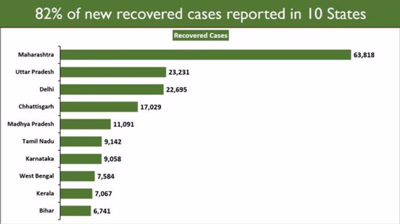 बीमारी से उबरने वाले मरीजों की संख्या में 10 राज्यों का योगदान 81.73 प्रतिशत है।