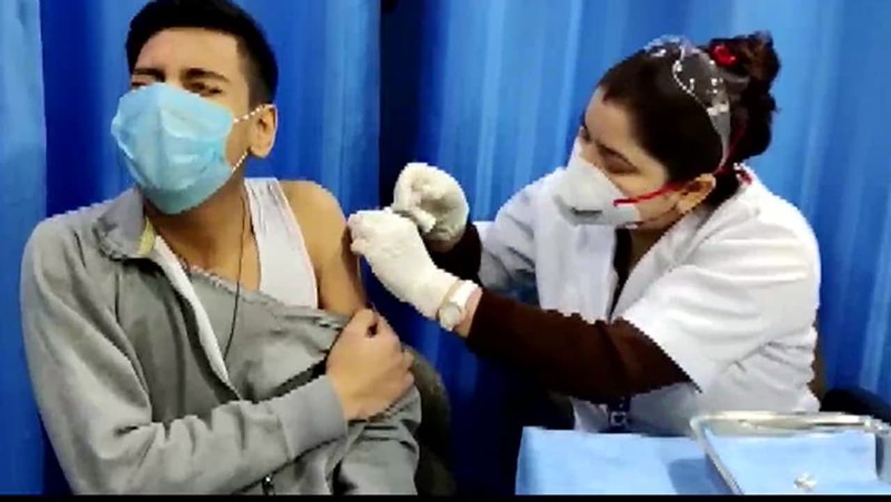 मध्यप्रदेश की राजधानी भोपाल के वैक्सीनेशन सेंटरों पर किशोरों की जबरदस्त भीड़ उमड़ रही है। यहां के एक सेंटर पर वैक्सीन लगवाती छात्रा। मुख्यमंत्री शिवराज सिंह चौहान ने सभी माता-पिता और अभिभावकों से बच्चों का टीकाकरण करवाने आगे आने की अपील की है।