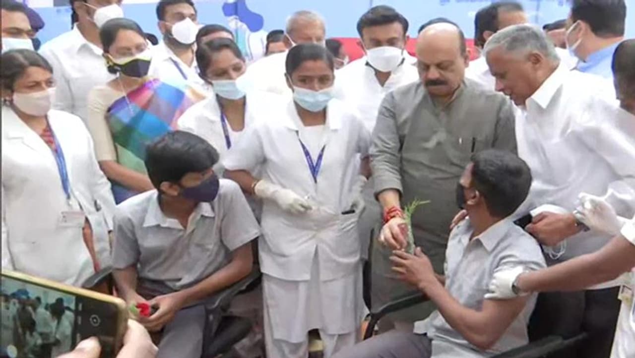 कर्नाटक के सीएम बसवराज एस बोम्मई ने बेंगलुरु के बीबीएमपी गवर्नमेंट गर्ल्स हाई स्कूल में 15 से 18 साल के बच्चों के लिए टीकाकरण अभियान शुरू किया। उन्होंने वैक्सीन लगवाने आए बच्चों के बीच पहुंचकर उत्साहवर्धन किया।