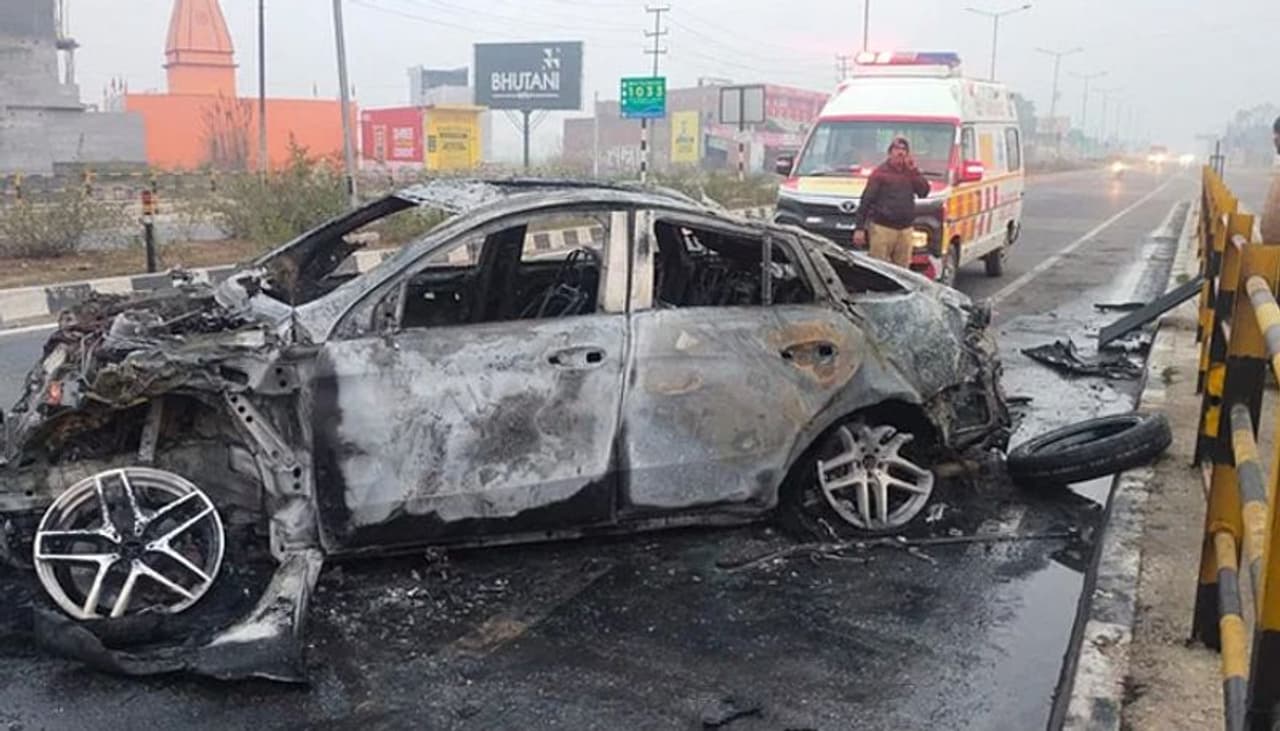 एक्सीडेंट के बाद कार में लगी आग
