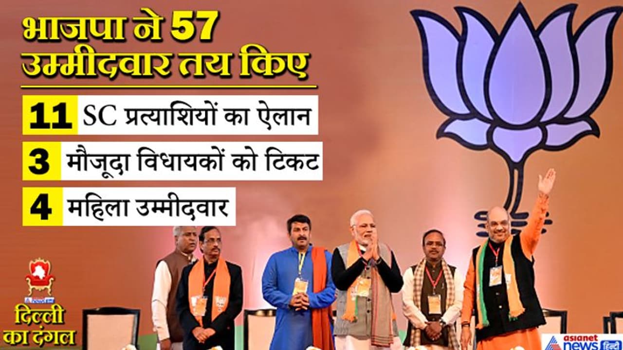 नई दिल्ली. दिल्ली विधानसभा चुनाव के लिए भाजपा ने शुक्रवार को पहली लिस्ट जारी कर दी। इसमें 57 लोगों के नाम हैं। मनोज तिवारी ने बताया, इनमें चार महिलाएं भी हैं। वहीं, 11 एससी उम्मीदवार भी है। इससे पहले आम आदमी पार्टी ने मंगलवार को सभी 70 उम्मीदवारों के नामों का ऐलान किया था।