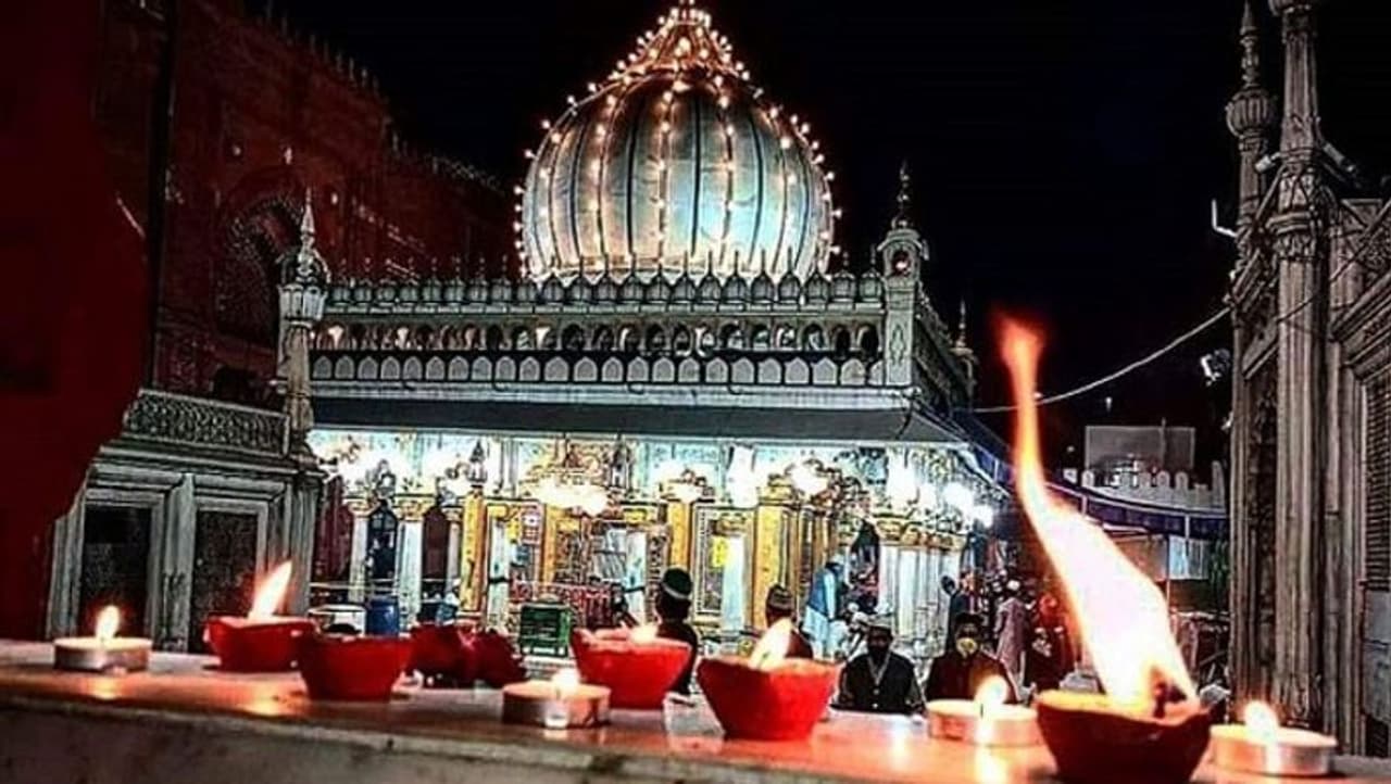 (यह तस्वीर दिल्ली की निजामुद्दीन दरगाह की है, जहां दिवाली पर सजावट की गई थी)