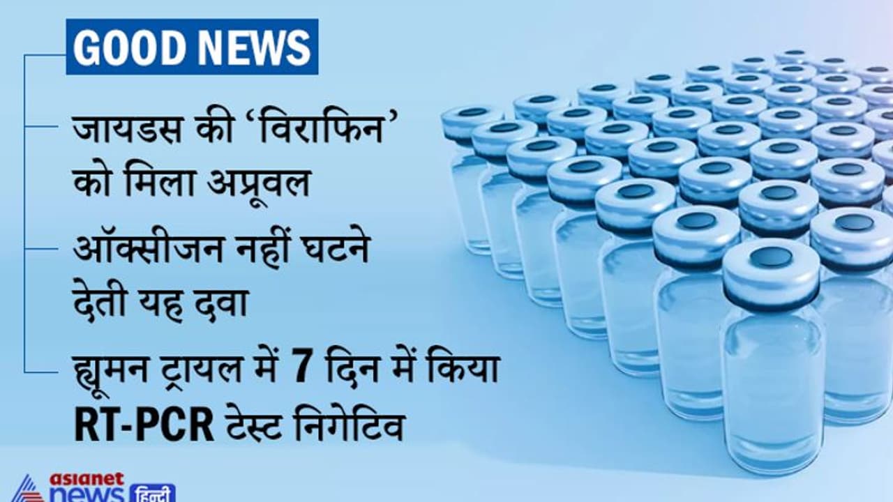कोरोना वायरस को भारत में 'कमजोर' करने अब वैक्सीनेशन ड्राइव को स्पीड दी जा रही है। इसी बीच एक और अच्छी खबर मिली है। शुक्रवार को भारत के ड्रग्स कंट्रोलर जनरल ऑफ इंडिया(DCGI) ने जायडस कैडिला की Virafin ड्रग्स को मंजूरी दे दी है। कंपनी का दावा है कि इस दवा से मरीजों को ऑक्सीजन देने की जरूरत नहीं पड़ती बता दें कि 1 मई से 18 साल से अधिक उम्र के सभी लोगों के लिए वैक्सीनेशन शुरू होगा। इस समय दुनियाभर में वैक्सीनेशन के 889,990,259 डोज हो चुके हैं। भारत की पोजिशन 14वें नंबर पर है।