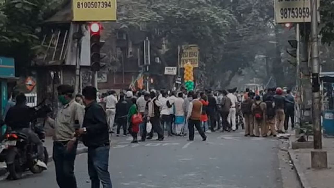 #WATCH | West Bengal: Stones were pelted at BJP workers who were part of a rally attended by Union Minister Debasree Chaudhuri, state BJP chief Dilip Ghosh and Suvendu Adhikari in Kolkata earlier today. pic.twitter.com/hLW8NEmWeX