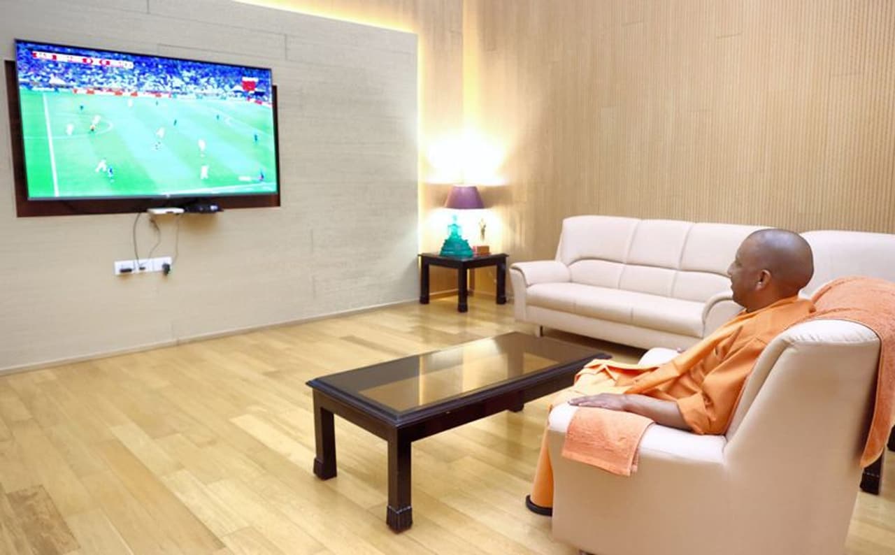 यूपी के मुख्यमंत्री योगी आदित्यनाथ मैच का आनंद उठाते हुए