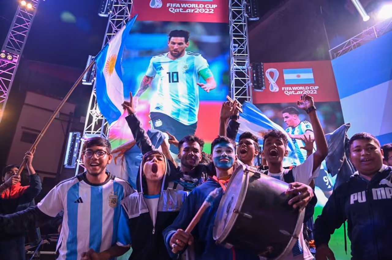 अर्जेंटीना के कोलकाता और पश्चिम बंगाल के अन्य हिस्सों में रविवार को जब दक्षिण अमेरिकी देश फीफा विश्व कप चैम्पियन बना, तो उसके समर्थक खुशी से झूम उठे। उत्साही समर्थकों ने पटाखे फोड़े और अपनी पसंदीदा टीम के नीले और सफेद रंगों में अपने इलाकों का चक्कर लगाया और अर्जेंटीना के राष्ट्रीय ध्वज को अपने हाथों से फहराया।