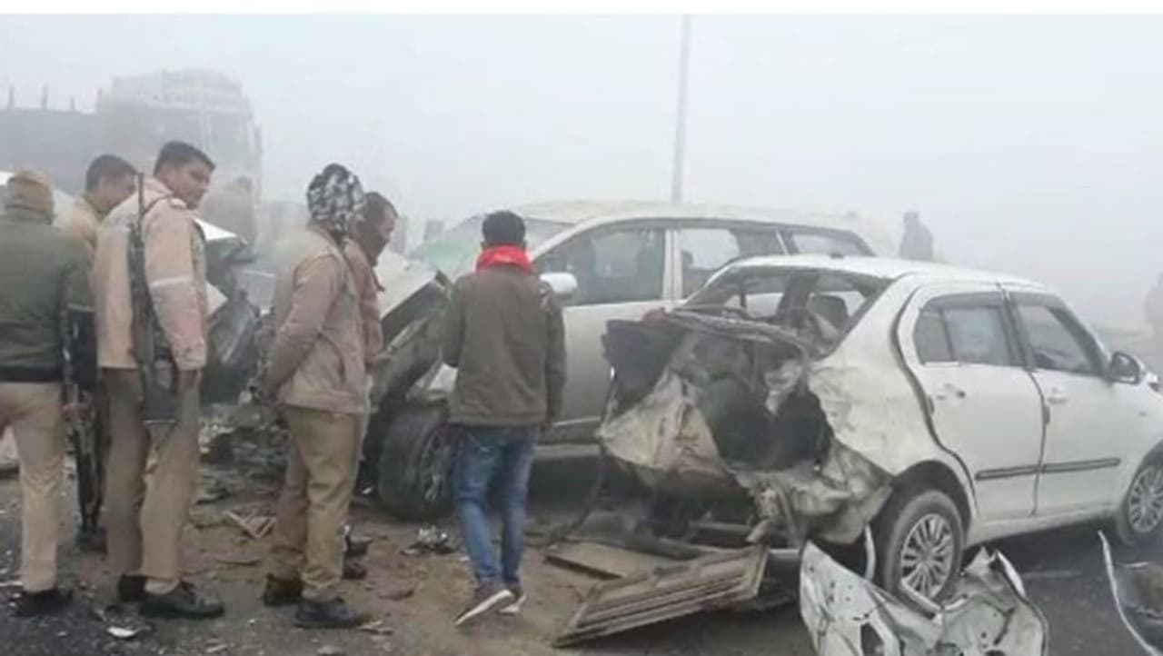 (यह तस्वीर बुलंदशहर-अलीगढ़ मार्ग की है। यहां 20 दिसंबर को घने कोहरे के कारण कई वाहन आपस में टकरा गए थे। इस दुर्घटना में एक व्यक्ति की मौत हो गई थी, जबकि 6 घायल हुए थे। उत्तर भारत में कोहरा बना रहेगा, लिहाजा वाहन ध्यान और धीमी गति से चलाएं)
