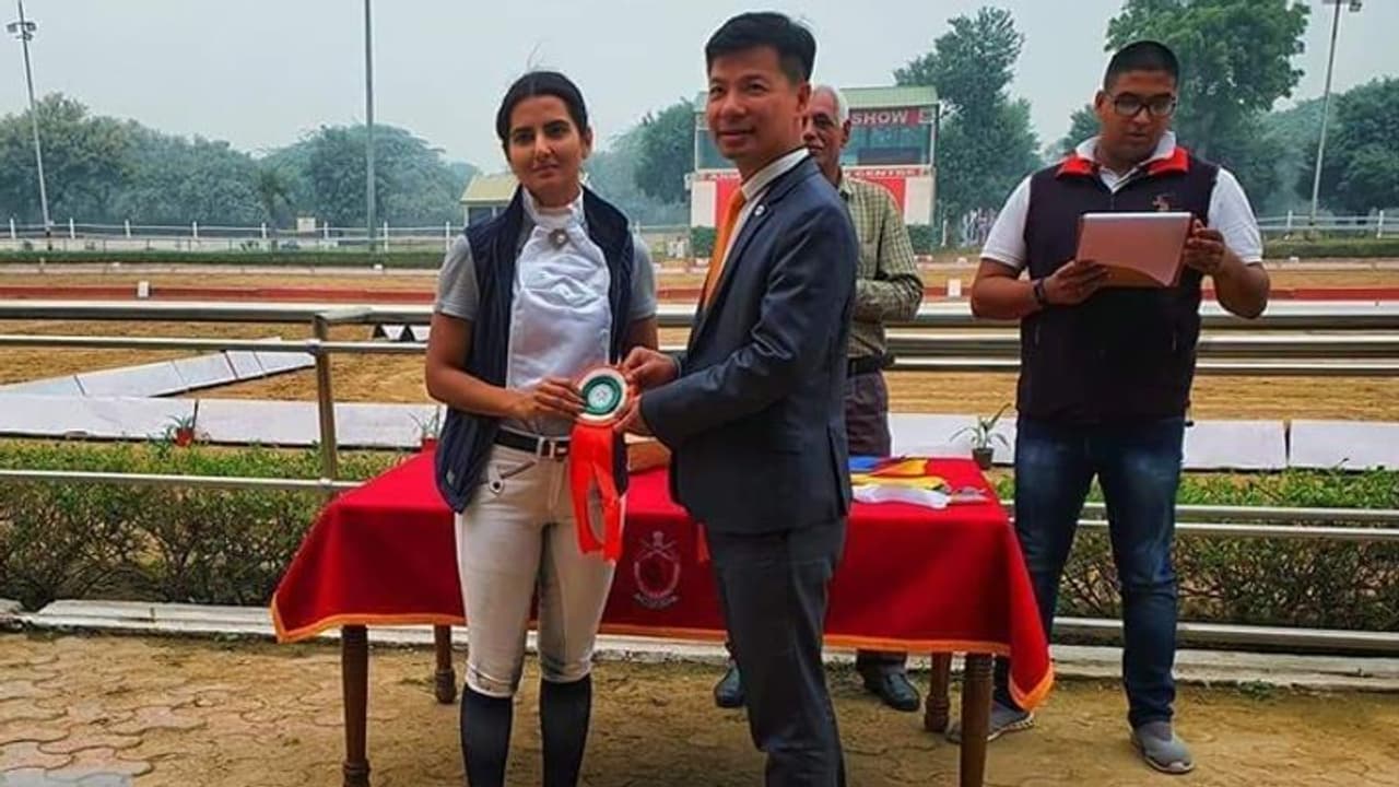 नई दिल्ली. हरियाणा के पूर्व मुख्यमंत्री भूपेंद्र हुड्डा की पुत्रवधू और पूर्व सांसद दीपेंद्र हुड्डा की पत्नी श्वेता हुड्डा ने नया कीर्तिमान रचा है। उन्होंने 2 नवंबर को दिल्ली में खेली गई विश्व घुड़सवारी चैंपियनशिप में गोल्ड मेडल अपने नाम किया है। आपको बता दें कि दीपेंद्र की पत्नी श्वेता ने चैंपियनशिप में 62.426 पॉइंट अर्जित किए और इस टूर्नमेंट में गोल्ड जीतने वाली पहली भारतीय महिला बनने का गौरव हासिल किया। इस सम्मानित टूर्नामेंट में 50 देशों के घुड़सवरों ने हिस्सा लिया था।