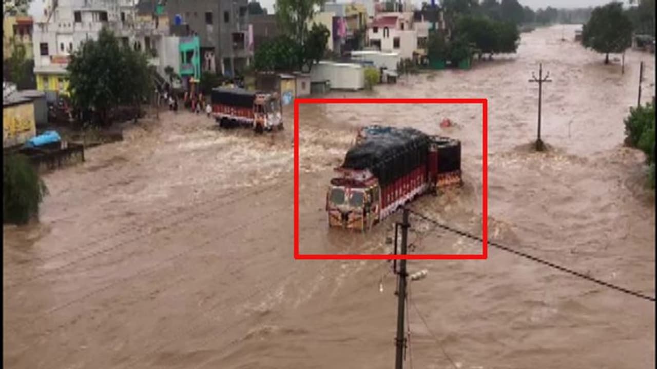 नासिक (महाराष्ट्र). लगातार बारिश के कारण नासिक जिले में कई इलाकों में बाढ़ जैसी स्थिति पैदा हो गई है, जिससे आम जनजीवन बुरी तरह प्रभावित हुआ है। नासिक को मजिस्ट्रेट सूरज मांड्रा ने कहा, "नासिक जिले के मनमाड शहर में मूसलाधार बारिश जारी है।" बारिश की वजह से यहां 3 ट्रक फंस गए, जिनकी फोटो सोशल मीडिया पर वायरल हो रही है।