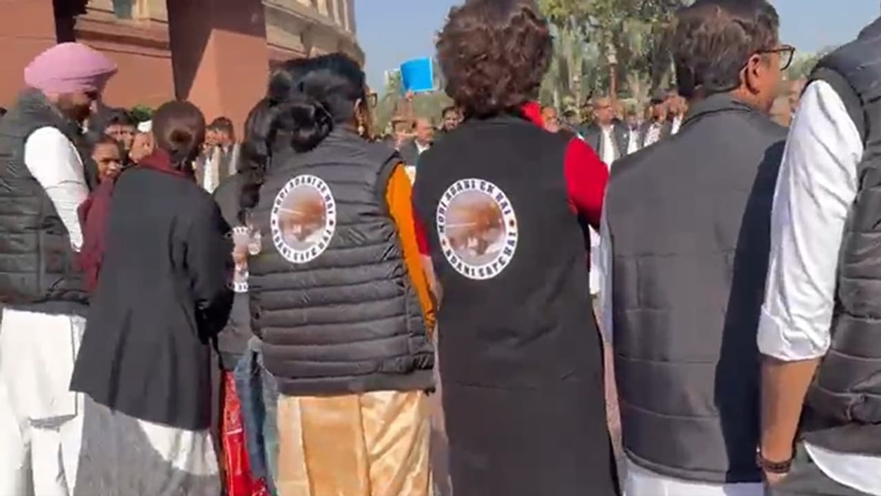 प्रियंका गांधी ने भी किया संसद परिसर में विरोध प्रदर्शन