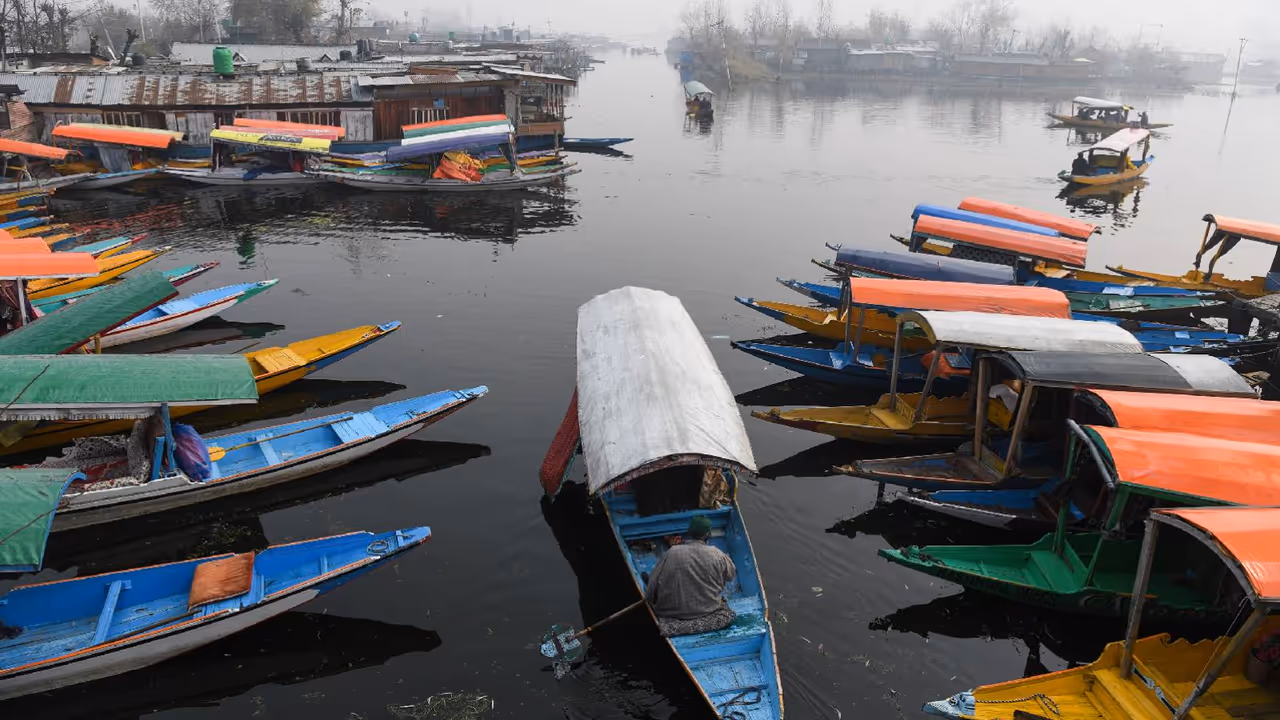 श्रीनगर में ठंडी, कोहरे वाली सुबह, जब तापमान माइनस 4.5 डिग्री सेल्सियस तक गिर गया।
