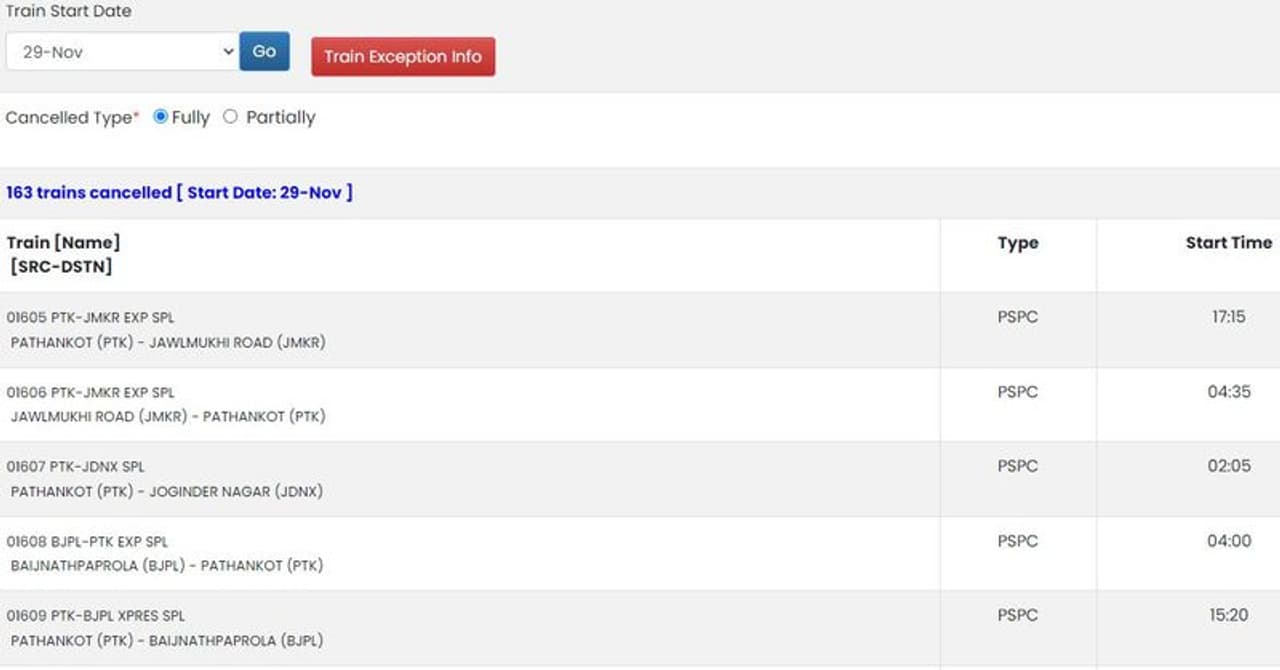कैंसिल ट्रेनों की पूरी लिस्ट देखने के लिए यहां क्लिक करें..