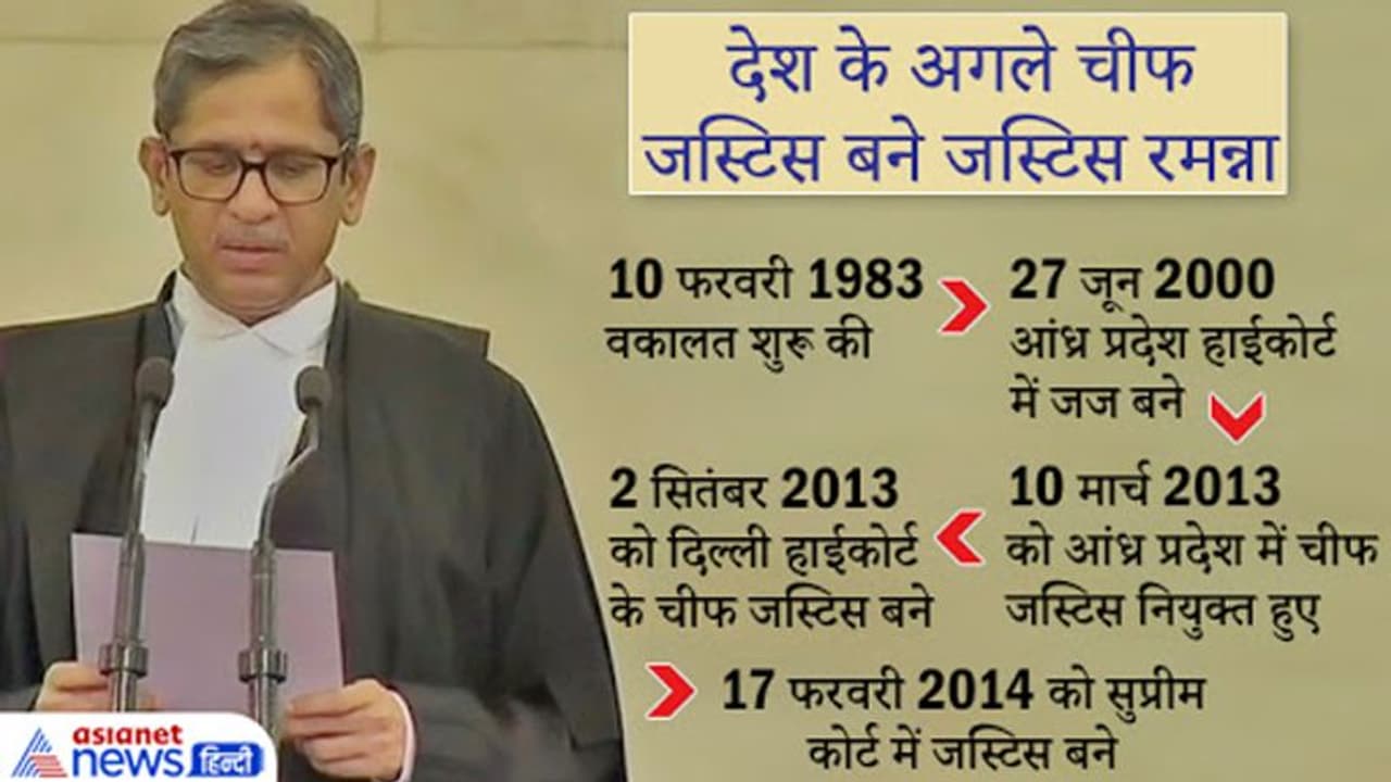 जस्टिस एनवी रमन्ना ने भारत के मुख्य न्यायाधीश के रूप में शपथ ग्रहण की। राष्ट्रपति रामनाथ कोविंद ने राष्ट्रपति भवन में उन्हें शपथ दिलाई। वे सुप्रीम कोर्ट के 48वें चीफ जस्टिस बने। चीफ जस्टिस बोबडे 23 अप्रैल को रिटायर हो गए थे।