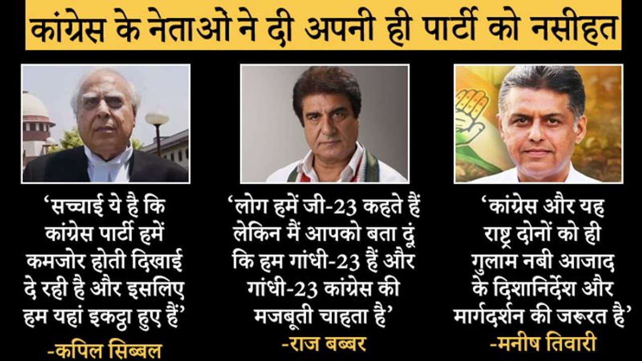 पिछले साल अगस्त, 2019 में सोनिया गांधी को लिखी चिट्ठी में G-23 नेताओं ने पार्टी में तुरंत सुधार करने की मांग की थी। इनमें जमीनी स्तर से लेकर कांग्रेस वर्किंग कमेटी (CWC) तक संगठन के चुनाव कराने की मांग की गई थी। आज एक बार फिर ये सभी नेता गांधी परिवार के खिलाफ एक साथ जमा हो रहे हैं। नेताओं का विरोध गांधी परिवार के उन करीबी लोगों से भी है, जो पार्टी संगठन और संसद में अहम पोजिशन पर बैठे हैं।