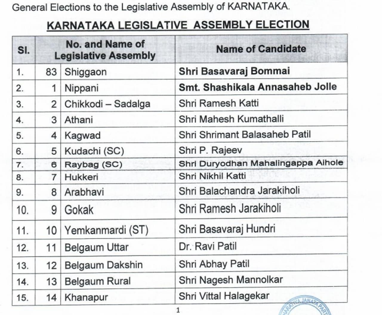 बीजेपी ने कर्नाटक assembly की 189 सीटों पर किसे बनाया कैंडिडेट देखिए पूरी लिस्ट
