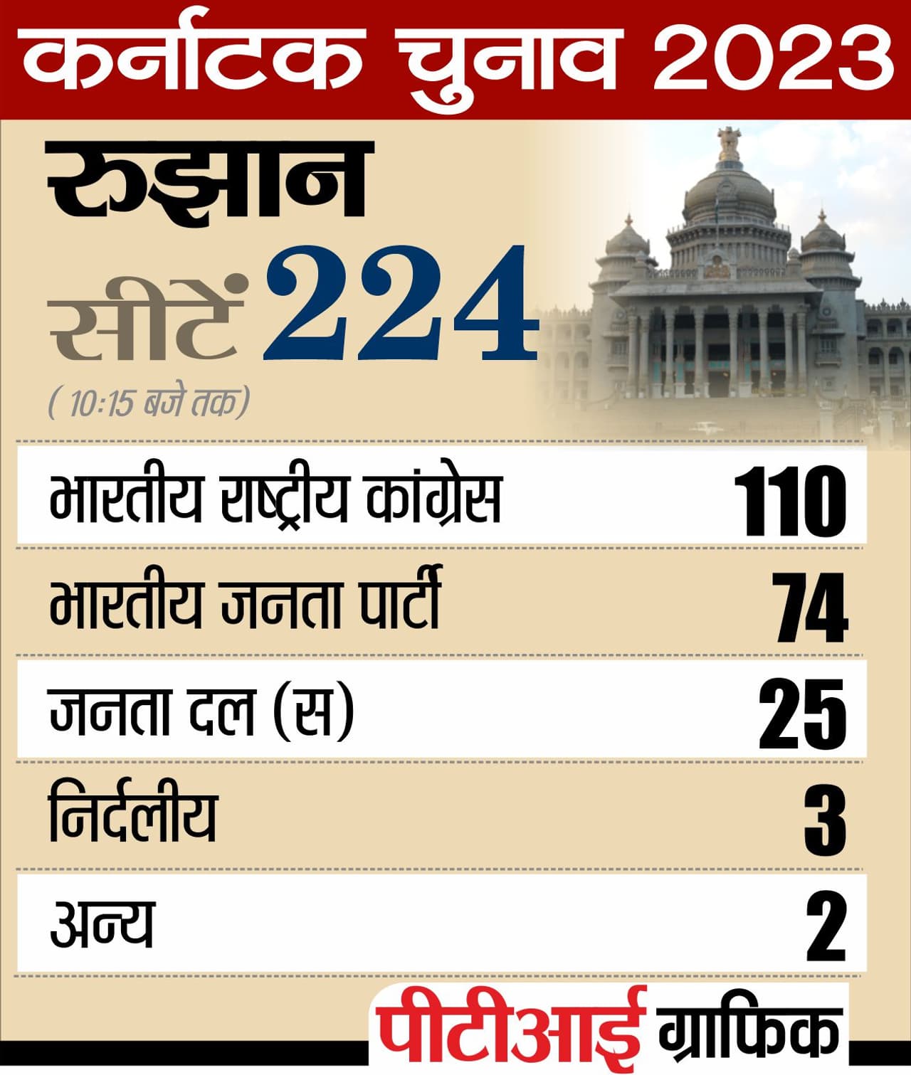 कर्नाटक असेंबली इलेक्शन रिजल्ट 2023: कांग्रेस को मिलेंगी 120 सीटें