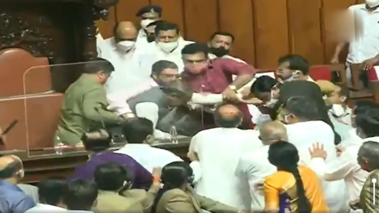 नई दिल्ली. कर्नाटक विधान परिषद में गौहत्या विरोध बिल पर बहस के दौरान जोरदार हंगामा हुआ। नौबत यहां तक आ गई कि सदस्यों ने उपाध्यक्ष के साथ धक्कामुक्की तक की। उन्हें कुर्सी से उठाकर ले गए। हाथापाई तक हुई।