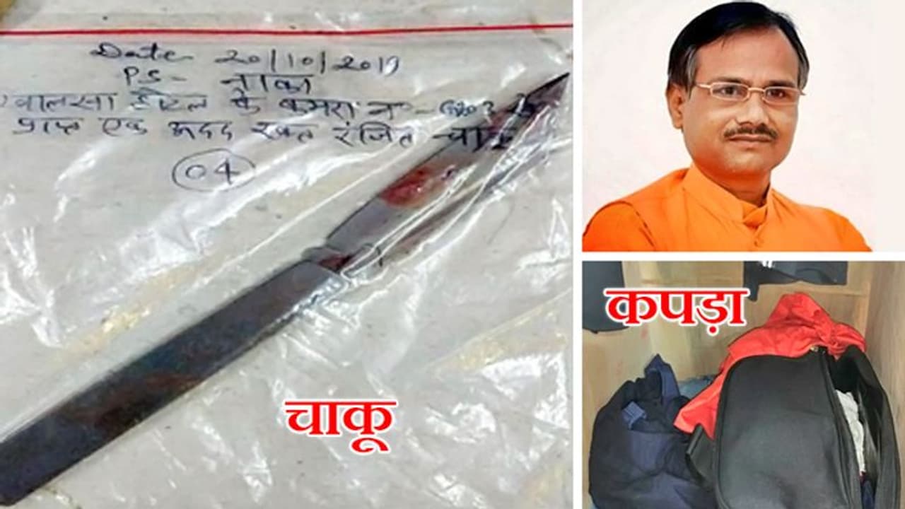 यूपी पुलिस ने कमलेश तिवारी को मारने के लिए खून से सना हुआ चाकू लखनऊ के एक होटल के कमरे से बरामद किया। पुलिस के मुताबिक, दो कथित हमलावरों के खून से सने कपड़े भी शहर के लालबाग इलाके में होटल के कमरे से बरामद किए गए थे।