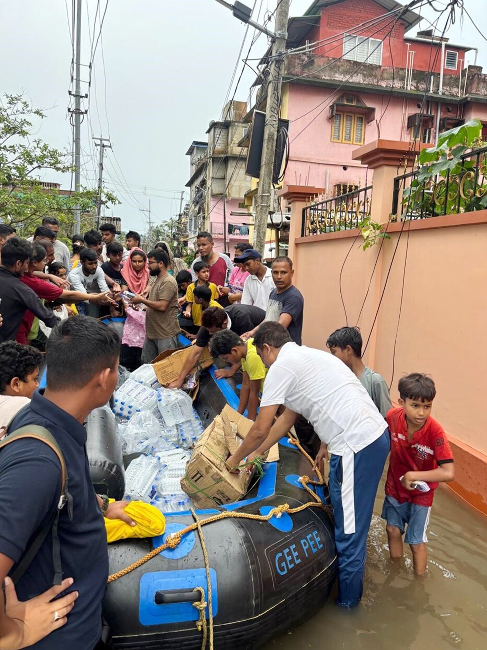 बाढ़ प्रभावित असम में राहत और बचाव कार्य तेज कर दिया गया है तथा एनडीआरएफ, एसडीआरएफ, पुलिस और अग्निशमन सेवाओं की टीमें निवासियों को सुरक्षित स्थानों पर पहुंचा रही हैं।
