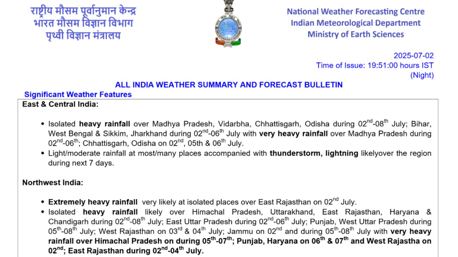 IMD के प्रमुख मृत्युंजय महापात्र ने बताया कि मध्य भारत और दक्षिण भारत से लगे क्षेत्रों में भी भारी बारिश की आशंका है। इसमें पूर्वी मध्य प्रदेश, छत्तीसगढ़, ओडिशा, विदर्भ, तेलंगाना, गुजरात और महाराष्ट्र के कुछ इलाकों में भी बारिश हो सकती है।