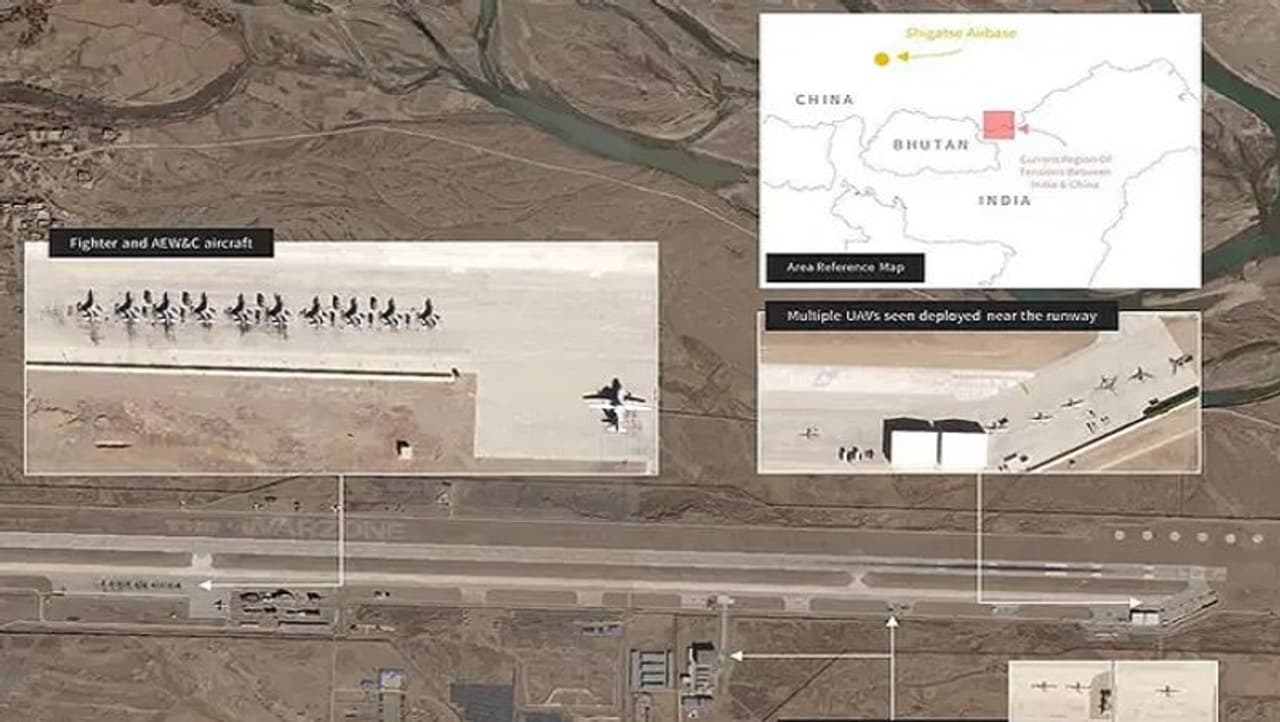 चीनी ने अपने शिगात्से पीस एयरपोर्ट पर लड़ाकू विमान तैनात किए हैं। सैटेलाइट इमेज से इस बात की जानकारी सामने आई है। तस्वीरों के अनुसार चीन ने LAC से करीब 155 किलोमीटर दूर स्थित शिगात्से एयर बेस को अपग्रेड किया है और यहां लड़ाकू विमान, हेलिकॉप्टर और ड्रोन तैनात किए गए हैं। चीन इस एयरपोर्ट का इस्तेमाल सैन्य और नागरिक उद्देश्यों के लिए करता है। यहां से भारतीय सीमा काफी नजदीक है। सैटेलाइट इमेज में 7 ड्रोन भी नजर आ रहे हैं।