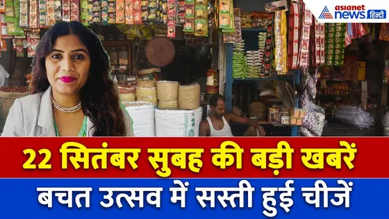 22 सितंबर सुबह की बड़ी खबरें: नवरात्रि के पहले दिन 22 सितंबर से शुरू हुए बचत उत्सव के दौरान तमाम चीजों के दामों में कमी आई है। दरअसल जीएसटी रिफॉर्म्स की वजह से यह दामों में कटौती देखी जा रही है। पीएम मोदी ने इसको लेकर 21 सितंबर को अपने संबोधन में भी जानकारी दी थी। वहीं तमाम रोजमर्रा की चीजों के दामों में कटौती के बाद लोग राहत महसूस कर रहे हैं। दुकानदारों में भी इसको लेकर उत्साह दिख रहा है और वह ग्राहकों को जागरूक करते भी नजर आ रहे हैं।