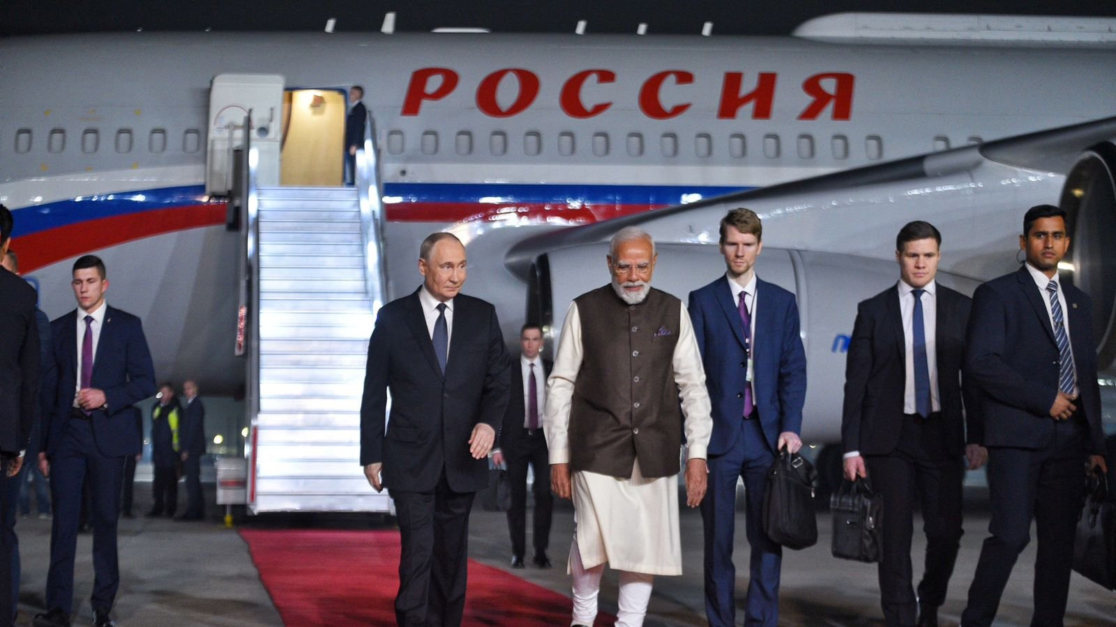 दिल्ली एयरपोर्ट पर लैंड करते ही रूसी राष्ट्रपति व्लादिमीर पुतिन का रेड कारपेट बिछाकर स्वागत किया गया।