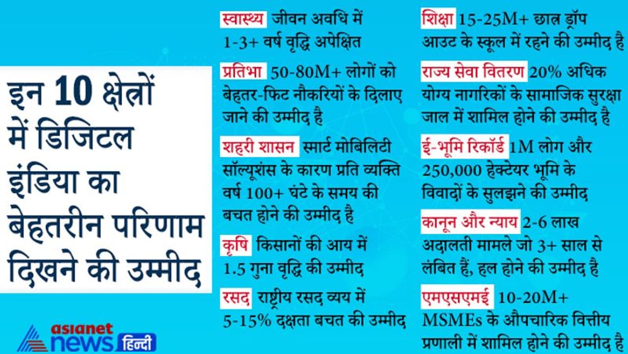 कोविड की जानकारियां हो या रुपयों का ट्रांजैक्शन, हर क्षेत्र में डिजिटल इंडिया की धमक बढ़ी है। आधार, भीम एप की तो दुनिया में धूम मची है। यूपीआई और भीम एप दुनिया के कई देश इस्तेमाल कर रहे। आधार तो पहचान का सबसे बड़ा डिजिटल प्लेटफार्म बन चुका है। डिजिटल इंडिया ने एक ऐसे इकोसिस्टम का निर्माण कर दिया है जो साल 2030 तक 700 बिलियन डॉलर के अवसर को खोल रहा है। इन प्लेटफार्म्स से 500 बिलियन डॉलर की बचत का अनुमान लगाया गया है जो देश की जीडीपी का 5.5 प्रतिशत है।