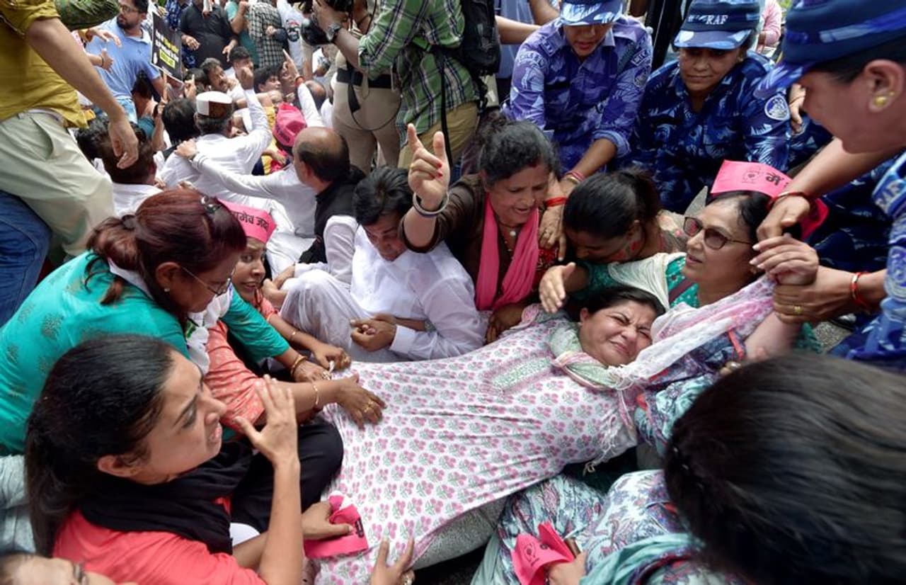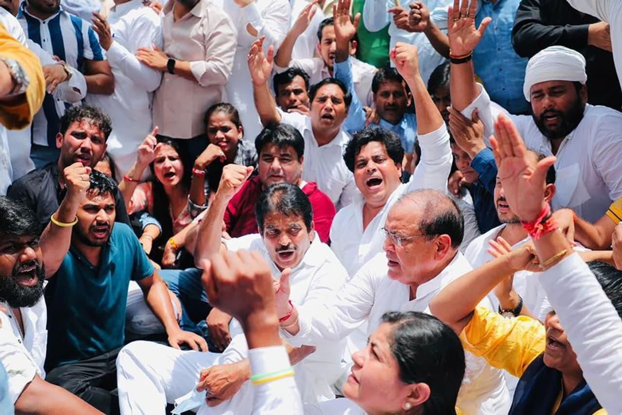 कांग्रेस नेता केसी वेणुगोपाल, इमरान प्रतापगढ़ी, यशपाल आर्य और अन्य ने 21 जून को नेशनल हेराल्ड मामले में प्रवर्तन निदेशालय(ED) द्वारा पार्टी नेता राहुल गांधी की पूछताछ के विरोध में नारेबाजी की थी।