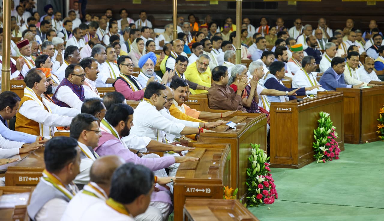 संसद हाल में पहुंचने पर प्रधानमंत्री नरेंद्र मोदी का एनडीए दलों के नेताओं और नवनिर्वाचित सांसदों, बीजेपी शासित प्रदेशों के मुख्यमंत्रियों-उपमुख्यमंत्रियों ने स्वागत अभिनंनदन किया।