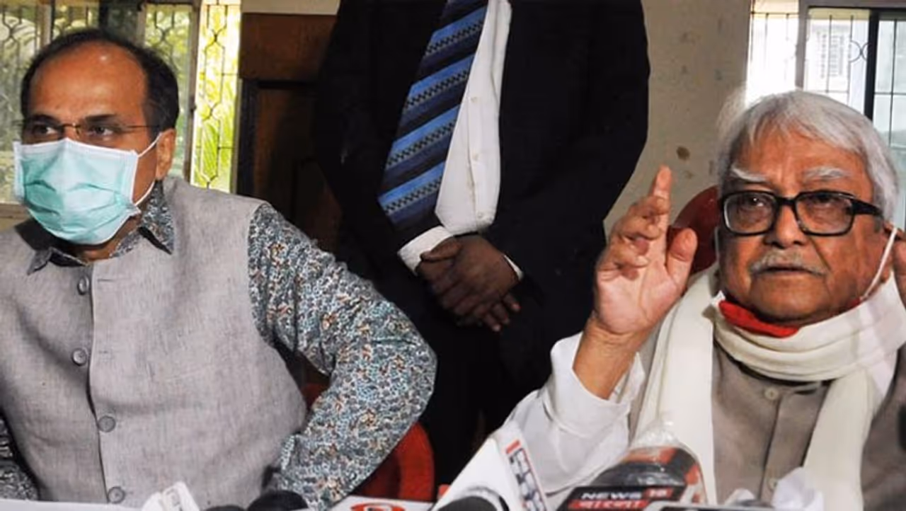 (बायें प्रदेश कांग्रेस अध्यक्ष अधीर रंजन चौधरी और वाम मोर्चे से विमान बोस)