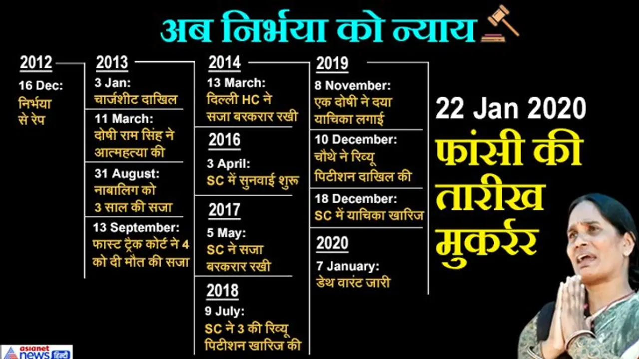 निर्भया मामले में कोर्ट ने मंगलवार को डेथ वारंट जारी कर दिया। अब निर्भया को 7 साल बाद न्याय मिलता दिख रहा है। दक्षिण दिल्ली में चलती बस में 16-17 दिसंबर, 2012 की रात में 23 साल की निर्भया से 6 लोगों ने बर्बरता पूर्वक सामूहिक बलात्कार किया था और उसे बुरी तरह जख्मी हालत में सड़क पर फेंक दिया था।