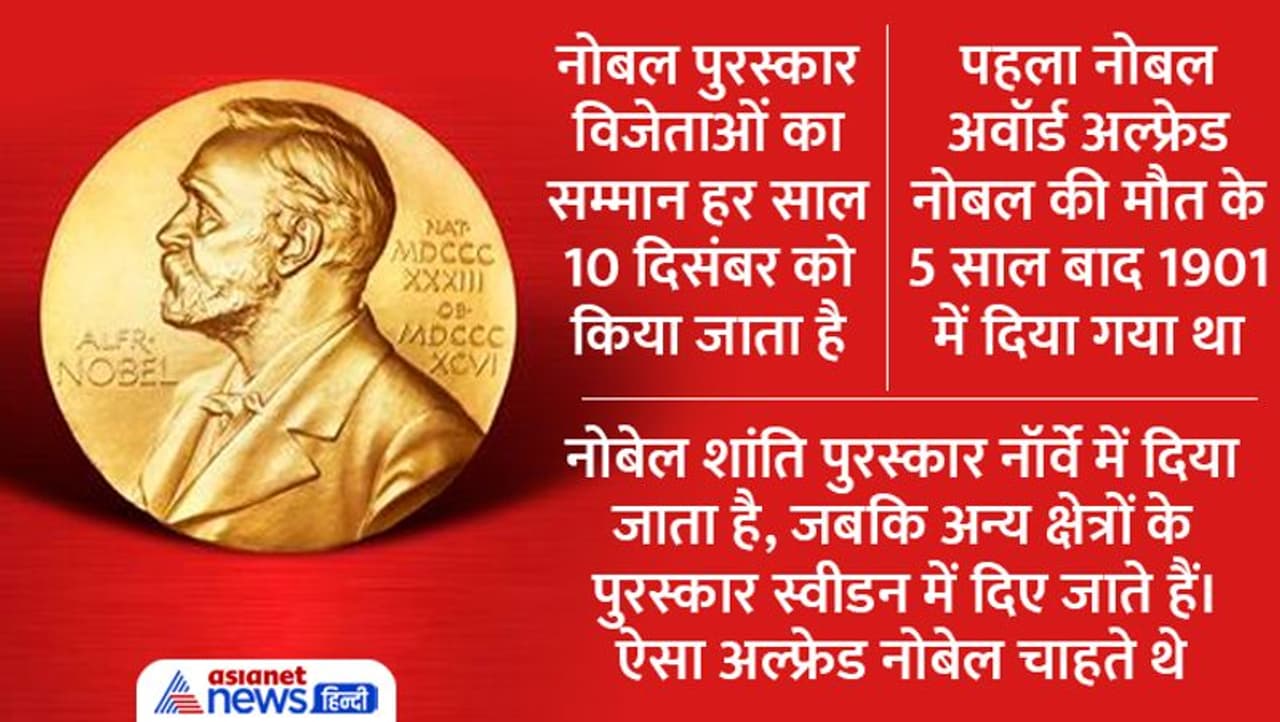 नोबल पुरस्कार स्वीडन के महान वैज्ञानिक अल्फ्रेड नोबेल की याद में दिया जाता है। अल्फ्रेड नोबल की मौत 10 दिसंबर, 1896 को हुई थी। उन्होंने अपनी संपत्ति का एक बड़ा हिस्सा ट्रस्ट के लिए सुरक्षित रखा था। उनकी ख्वाहिश थी कि इस पैसे से हर साल उन लोगों को सम्मानित किया जाए, जिन्होंने मानव हित के लिए सबसे ज्यादा काम किया है। इसके बाद 1901 से स्वीडन के बैंक में जमा पैसे से मिलने वाले ब्याज से हर साल नोबल पुरस्कार दिया जाने लगा।