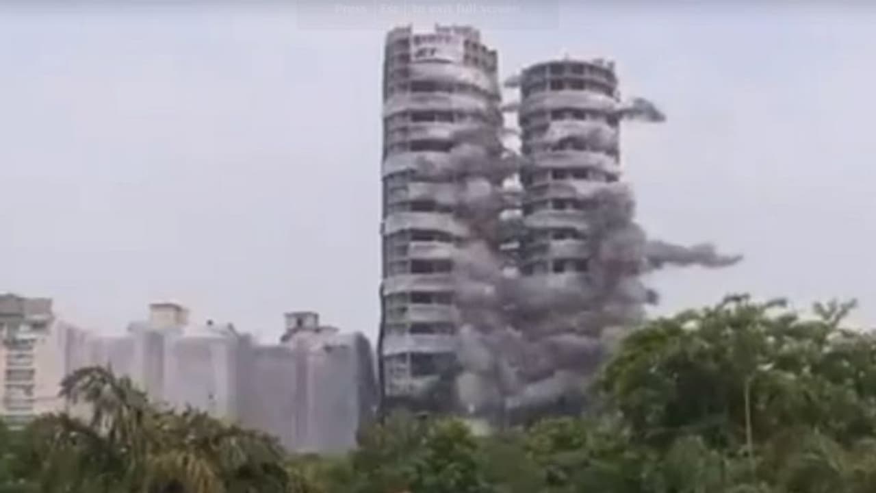 ट्विन टावरों को अंतिम बार देखने जुटे लोग, पुलिस ने हटाया