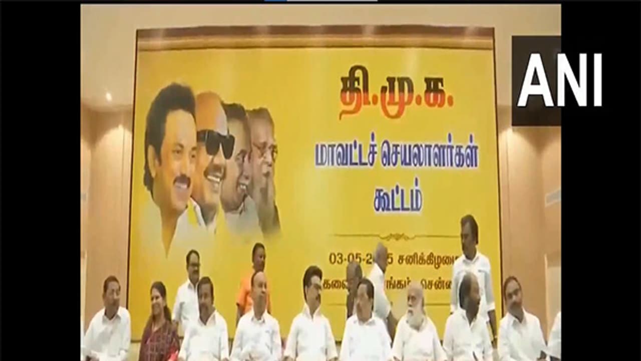 "केंद्र की भाजपा सरकार, जो राजनीतिक उद्देश्यों के लिए प्रवर्तन निदेशालय जैसी एजेंसियों का उपयोग करती है, की द्रमुक जिला सचिवों की बैठक में निंदा की जाती है। चाहे कितने भी खतरे आएं, द्रमुक उनका कानूनी तौर पर और जनता के समर्थन से सामना करेगी," स्टालिन ने कहा। "हमारी ताकत हमारे पार्टी ढांचे में है। किसी अन्य पार्टी के पास ऐसा प्रशासनिक ढांचा नहीं है। हम उस ढांचे को समय के साथ लगातार अपग्रेड करते हैं, और हमें ऐसा करना जारी रखना चाहिए," उन्होंने कहा।