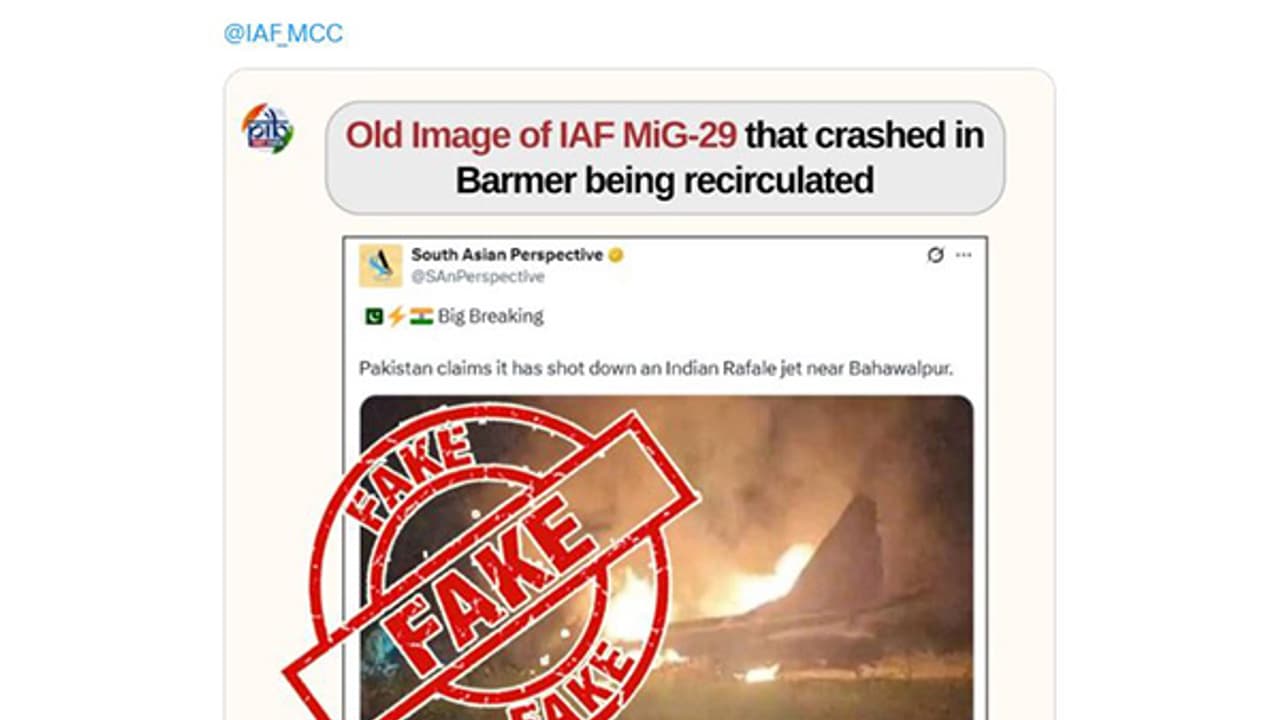 पाकिस्तान समर्थक सोशल मीडिया हैंडल्स द्वारा ऑपरेशन सिंदूर के संबंध में एक दुर्घटनाग्रस्त विमान की भ्रामक तस्वीर फैलाई जा रही है। PIB ने स्पष्ट किया है कि यह तस्वीर भारतीय वायु सेना के मिग-29 लड़ाकू विमान के एक पुराने हादसे की है।