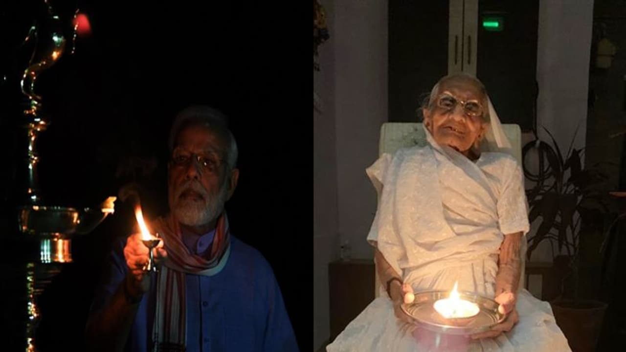 कोरोना वायरस के खिलाफ पूरा देश जंग लड़ रहा है। ऐसे में प्रधानमंत्री नरेंद्र मोदी की अपील पर पूरे देश ने एकजुटता का परिचय देते हुए रविवार रात 9 बजे 9 मिनट तक दीया, मोमबत्ती जलाईं। उधर, पीएम बेटे की अपील पर मां हीराबेन ने भी दीया जलाया। प्रधानमंत्री मोदी ने भी खुद दीया जलाते हुए अपनी फोटो शेयर की।