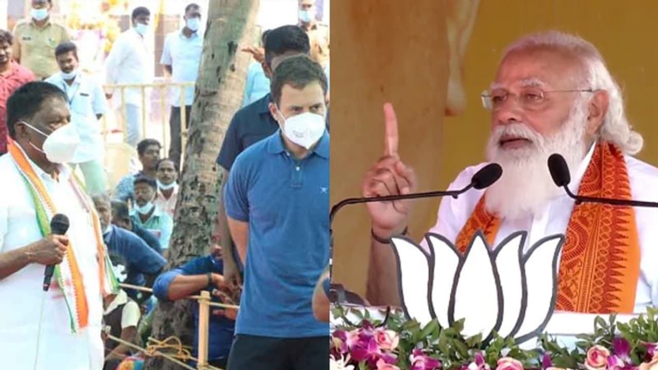 प्रधानमंत्री नरेंद्र मोदी गुरुवार को पुडुचेरी पहुंचे। यहां उन्होंने जनसभा को संबोधित करते हुए कांग्रेस और पुडुचेरी के पूर्व मुख्यमंत्री नारायणसामी पर जमकर निशाना साधा। इतना ही नहीं उन्होंने नारायणसामी के उस झूठ का भी जिक्र किया, जो उन्होंने राहुल गांधी के सामने भरी सभा में बोला था।