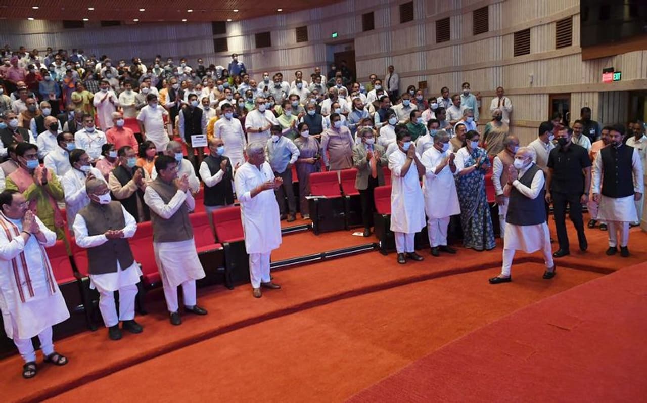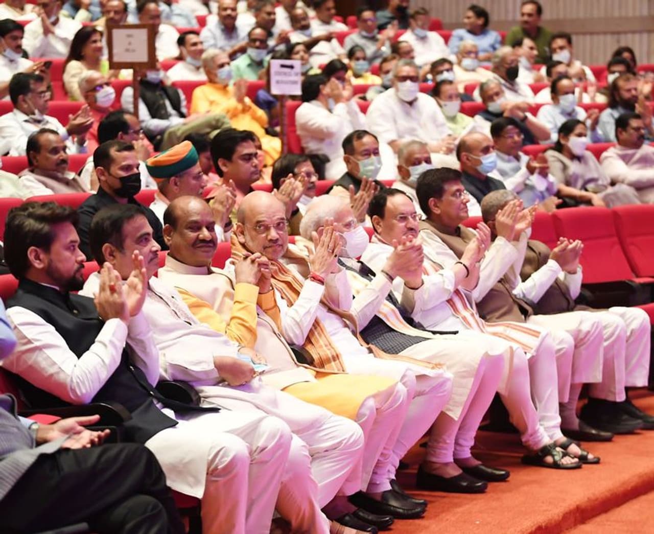 नई दिल्ली। प्रधानमंत्री नरेंद्र मोदी (Narendra Modi) बुधवार शाम को अपने कैबिनेट सहयोगियों के साथ संसद के बालयोगी सभागार में दूरदर्शन द्वारा बनाए गए धारावाहिक 'स्वराज' की विशेष स्क्रीनिंग में शामिल हुए। गृह मंत्री अमित शाह, बीजेपी के राष्ट्रीय अध्यक्ष जेपी नड्डा, केंद्रीय सूचना और प्रसारण मंत्री अनुराग ठाकुर समेत कई मंत्री भी स्पेशल स्क्रीनिंग में मौजूद थे।