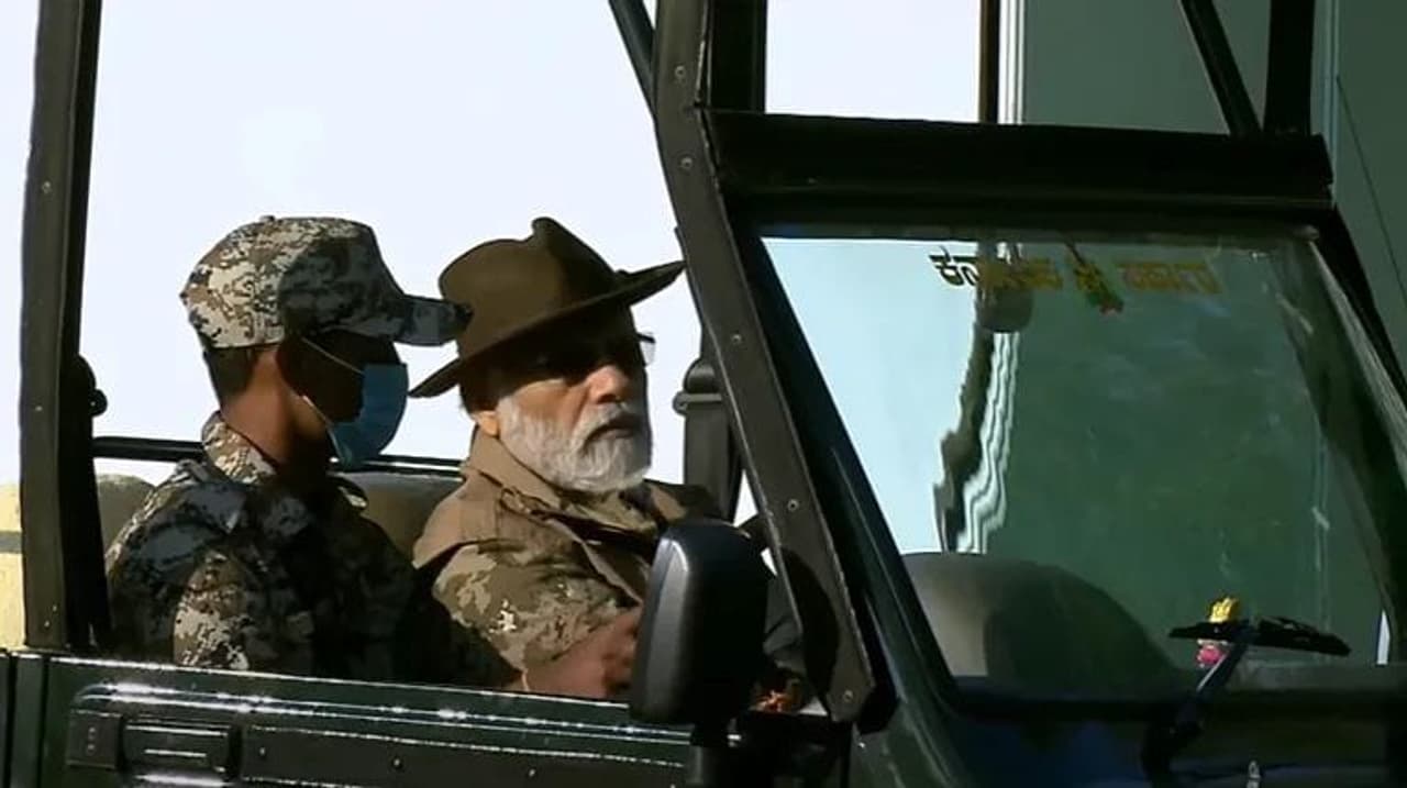 प्रधानमंत्री नरेंद्र मोदी जिप्सी की फ्रंट सीट पर सवार होकर जंगल सफारी पर निकले।