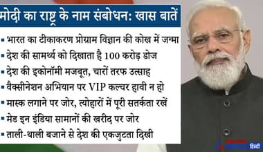 पीएम मोदी ने इससे पहले 7 जून को देश को संबोधित किया था। तब उन्होंने दो बड़े ऐलान किए थे। पहला 18 साल से बड़े सभी लोगों को 21 जून से कोरोना की वैक्सीन फ्री में लगेगी। दूसरा दिवाली तक 80 करोड़ गरीब लोगों को मुफ्त राशन दिया जाएगा। ये कोरोनाकाल में पीएम मोदी का देश के नाम 9वां संबोधन था।