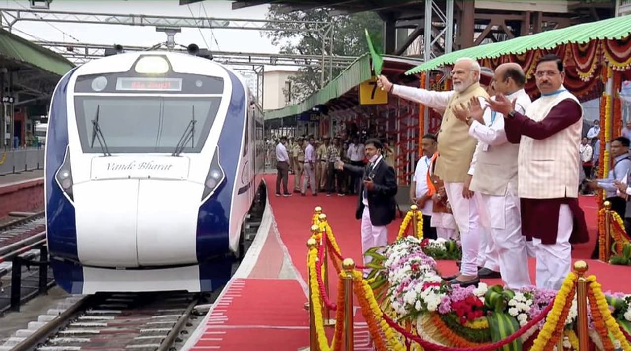 केएसआर रेलवे स्टेशन पर वंदे भारत एक्सप्रेस को हरी झंडी दिखाते पीएम मोदी