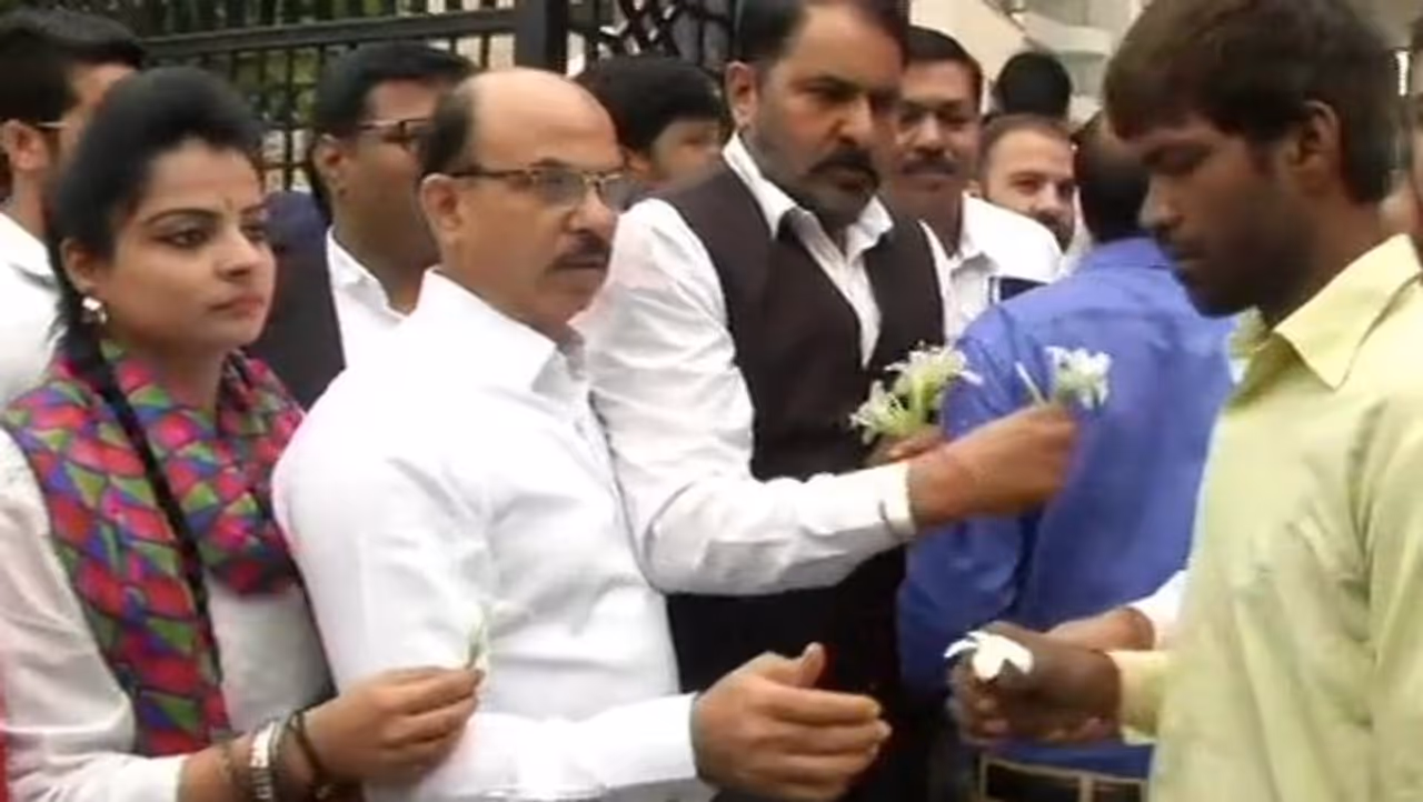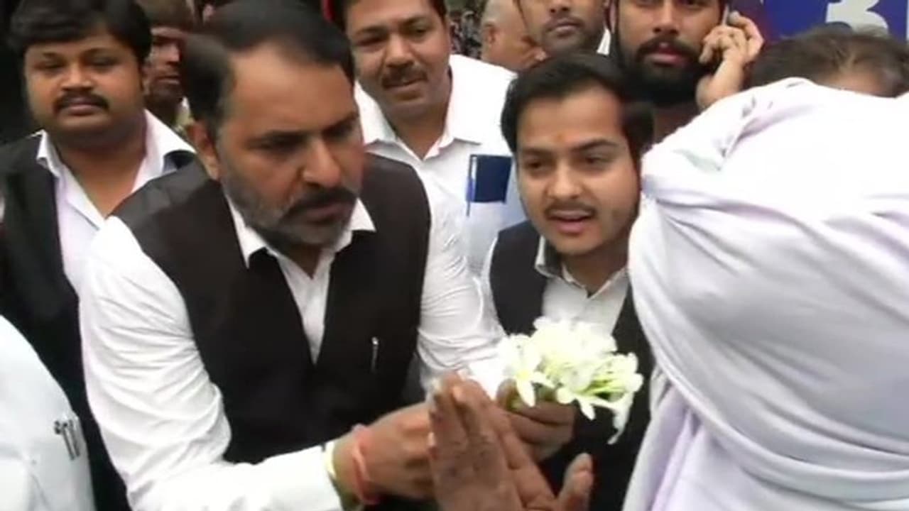 नई दिल्ली. तीस हजारी कोर्ट में शनिवार को पुलिस और वकीलों के बीच हुई झड़प के पांचवें दिन साकेत डिस्ट्रिक्ट कोर्ट की अलग ही तस्वीर देखने को मिली। वकीलों ने कोर्ट आने वाले लोगों का फूल देकर स्वागत किया। लेकिन उन्होंने अदालती कामकाज में भाग नहीं लिया। पुलिस को अदालत परिसर के अंदर आने दिया जा रहा है। 2 नवंबर को तीस हजारी कोर्ट परिसर में वकीलों और पुलिस कर्मियों के बीच झड़प हुई थी, जिसके बाद बुधवार को वकीलों ने साकेत कोर्ट का गेट बंद प्रदर्शन किया था।