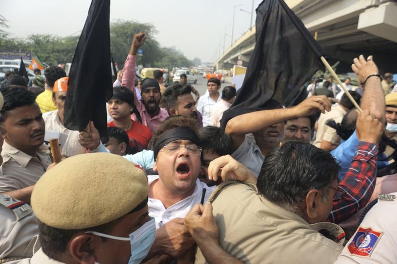 प्रदर्शन को देखते हुए मौके पर बड़ी संख्या में पुलिस बल तैनात करना पड़ा। केजरीवाल के साथ डिप्टी सीएम मनीष सिसाेदिया भी थे।