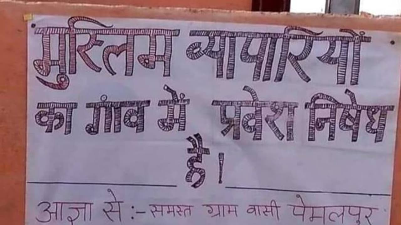 यह मामला इंदौर के पेमलपुर गांव का है। यहां लोगों ने गांव में पोस्टर लगा दिए। इनमें लिखा था, गांव में मुस्लिम व्यापारियों का प्रवेश निषेध है। यह पोस्टर गांव में शनिवार को लगाए गए थे।